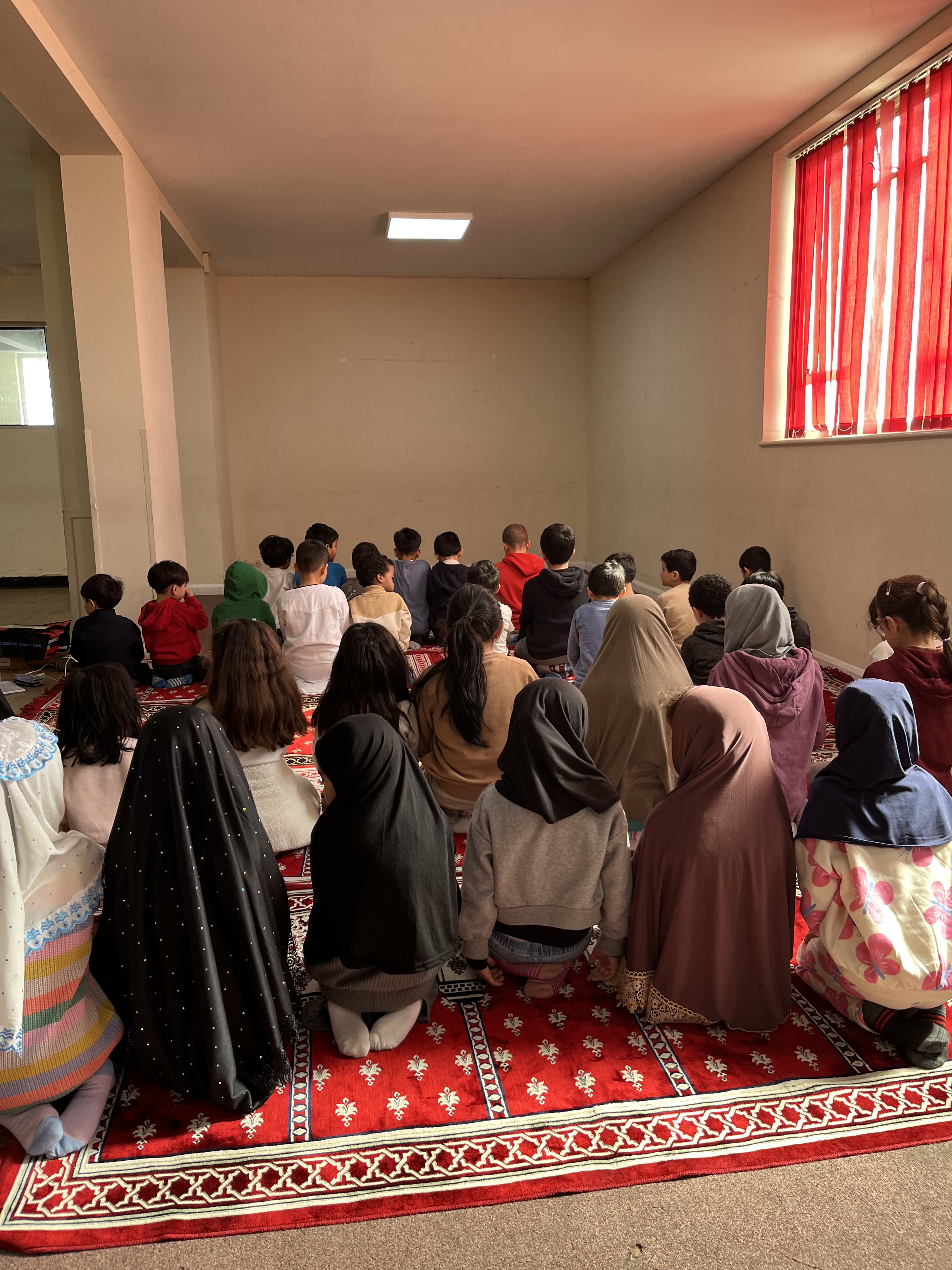 Children also pray Salah together during the session, with prayer times adjusted according to the season.